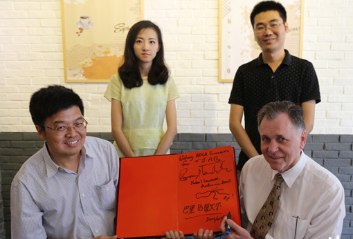 7月TjAb眾創(chuàng)空間迎來一位國際大牛,正在參加2015年國際生物經(jīng)濟(jì)大會(huì)的“諾貝爾”獎(jiǎng)得主馬歇爾光臨了這里,對導(dǎo)師微信墻頗感興趣的他,還拿出了自己的微信二維碼,現(xiàn)場讓創(chuàng)客們掃一掃,加微信隨時(shí)聯(lián)系。